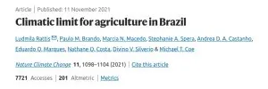 2021 – Artigo científico revela, de forma inédita, sobre o efeito do desmate e mudanças do clima e da agricultura.