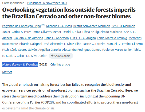 Overlooking vegetation loss outside forests imperils the Brazilian Cerrado and other non-forest biomes