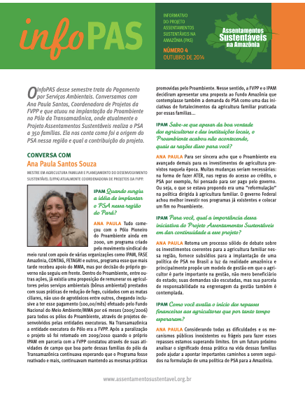 InfoPAS - Número 4 - Ano 2 - Informativo do Projeto Assentamentos Sustentáveis na Amazônia (PAS). Brasília, 2014.