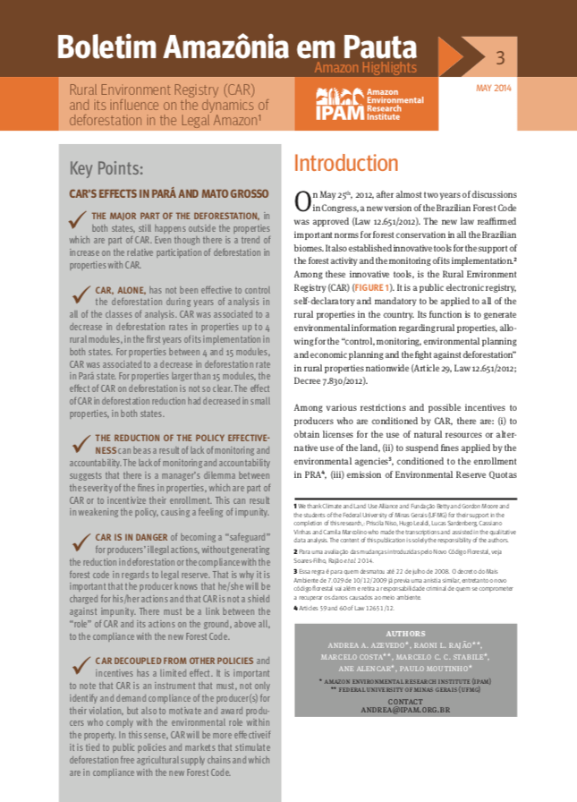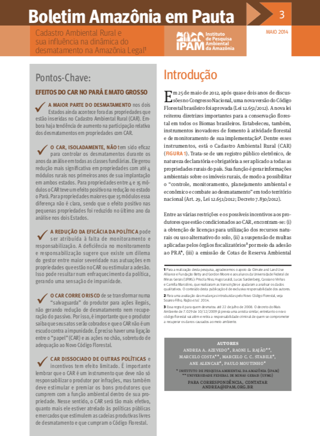 Amazônia em Pauta 3: Rural Environment Registry (CAR) and its influence on the dynamics of deforestation in the Legal Amazon