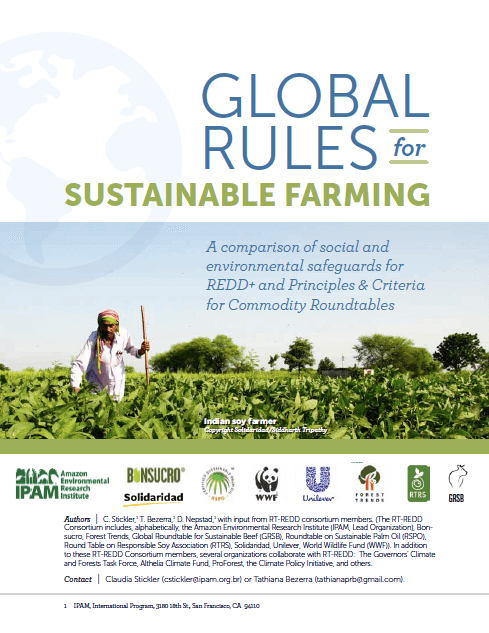Publicação, em inglês, faz uma comparação das salvaguardas sociais e ambientais de REDD+ e dos princípios e critérios das mesas-redondas de commodities.