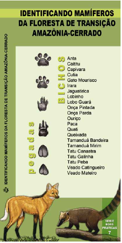 Guia de bolso apresenta a descrição de 22 pegadas de animais, e tem o objetivo de estimular os produtores locais a reconhecer e identificar a fauna de grandes mamíferos da Floresta de Transição Amazônia-Cerrado.