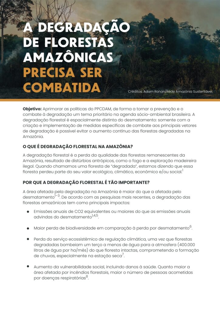 Documento aponta caminhos para o aprimoramento do PPCDAm (Plano de Ação para Prevenção e Controle do Desmatamento na Amazônia Legal), a fim de tornar a prevenção e o combate à degradação um tema prioritário na agenda ambiental brasileira. Atualmente, este é o...