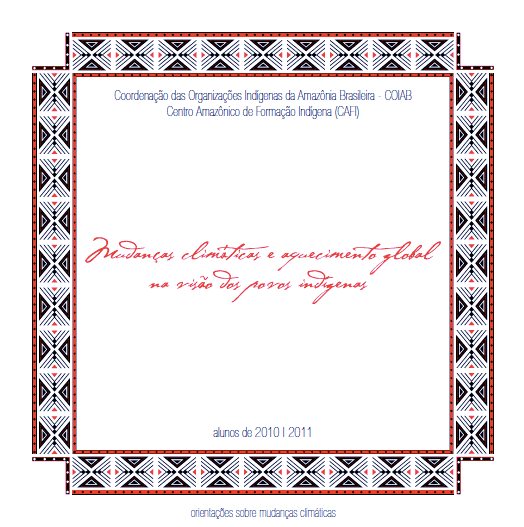 Cartilha tem autoria de 29 alunos indígenas provenientes dos nove estados da Amazônia brasileira conta com explicações e ilustrações dos próprios alunos sobre conceitos básicos e o contexto geral das mudanças climáticas, suas consequências para os povos indígenas e maneiras de controle e minimização dos seus efeitos. Aborda ainda quais os mecanismos importantes que estão sendo discutidos no contexto internacional para reduzir as emissões de gases de efeito estufa e questões importantes no contexto indígena e brasileiro.