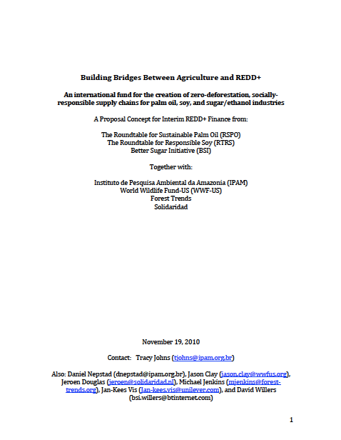 Building Bridges Between Agriculture and REDD+: summary of an international REDD+ farm fund proposal