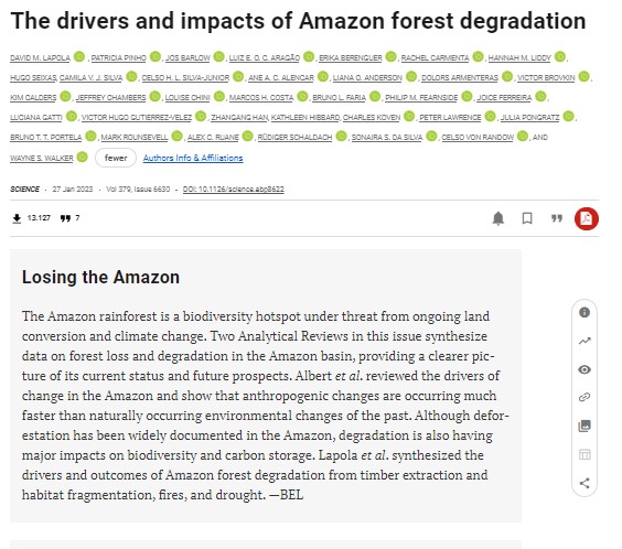Approximately 2.5 × 10⁶ square kilometers of the Amazon forest are currently degraded by fire, edge effects, timber extraction, and/or extreme drought, representing 38% of all remaining forests in the region. Carbon emissions from this degradation total up to 0.2...