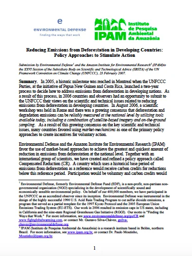 O Environmental Defense Fund (EDF) e o Instituto de Pesquisa Ambiental da Amazônia (IPAM) fazem recomendações ao Órgão Subsidiário de Assessoramento Científico e Tecnológico (SBSTA) no II Seminário sobre Redução de Emissões do Desmatamento em Países em...