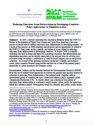 O Environmental Defense Fund (EDF) e o Instituto de Pesquisa Ambiental da Amazônia (IPAM) fazem recomendações ao Órgão Subsidiário de Assessoramento Científico e Tecnológico (SBSTA) no II Seminário sobre Redução de Emissões do Desmatamento em Países em...