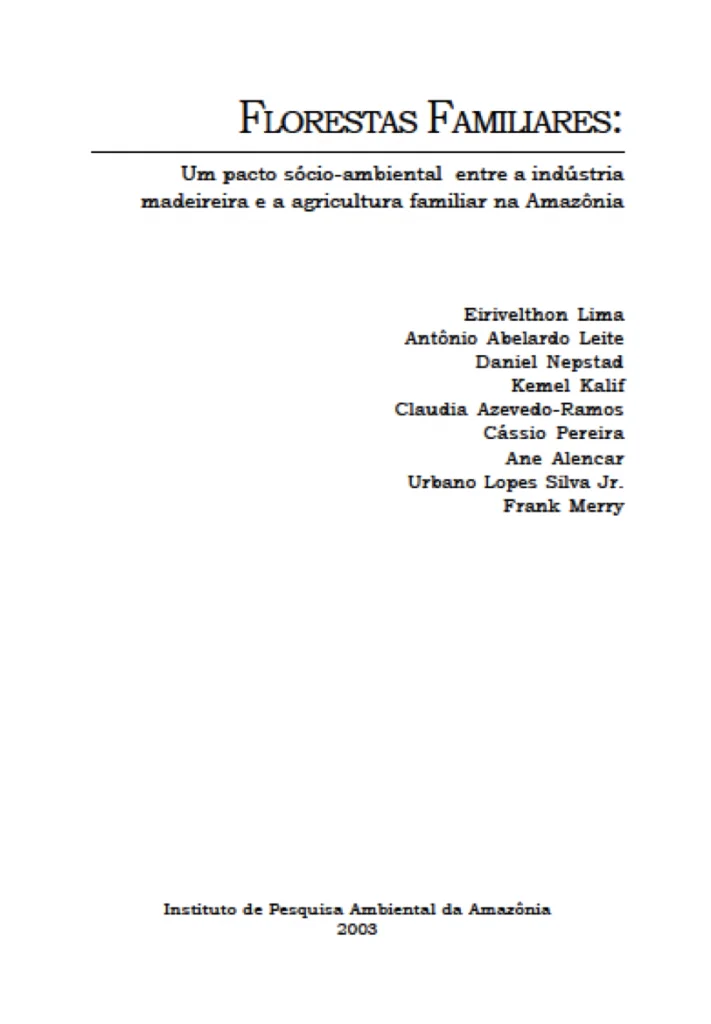 Florestas Familiares: Um pacto sócio-ambiental entre a indústria madeireira e a agricultura familiar na Amazônia