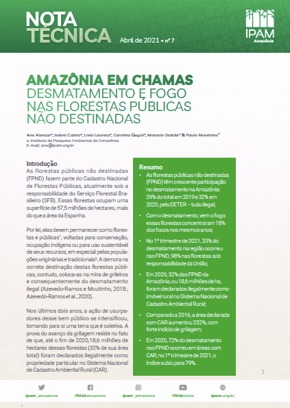Amazônia em Chamas 7 – Desmatamento e fogo nas florestas públicas não destinadas