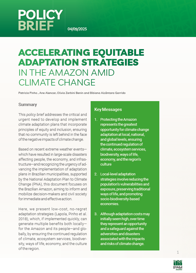 Este policy brief aborda a necessidade crítica e urgente de desenvolver e implementar planos de adaptação climática que incorporem princípios de equidade e inclusão, garantindo que nenhuma comunidade seja deixada para trás diante dos impactos negativos das mudanças...