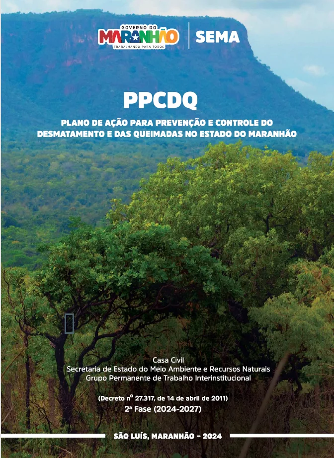 O PPCDQ-MA (Plano de Prevenção e Combate do Desmatamento e das Queimadas do Estado do Maranhão) dispõe sobre as diretrizes que norteiam as estratégias, metas e ações do Estado com o objetivo principal de reduzir o desmatamento e a degradação da vegetação nativa,...