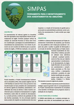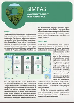 The system can be used as a reference and can be applied to any settlement of the country and aims to operationalize the monitoring of deforestation, forest degradation and land use in the settlements and properties associated with PAS.