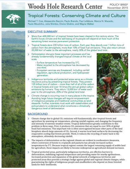Tropical Forests: Conserving Climate and Culture