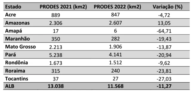 O Pará ainda é o estado que registra a maior área desmatada, 4.141 km², seguido por Amazonas, Mato Grosso e Rondônia. Juntos, os quatro Estado são responsáveis por 87,89% do desmatamento, segundo dados do Prodes.