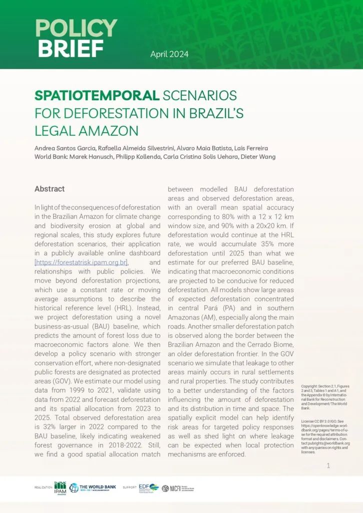 Researchers from IPAM (Amazon Environmental Research Institute) created, in partnership with the World Bank, a platform where it is possible to predict the risk of deforestation and estimate the future deforested areas in the states of the Legal Amazon. The...