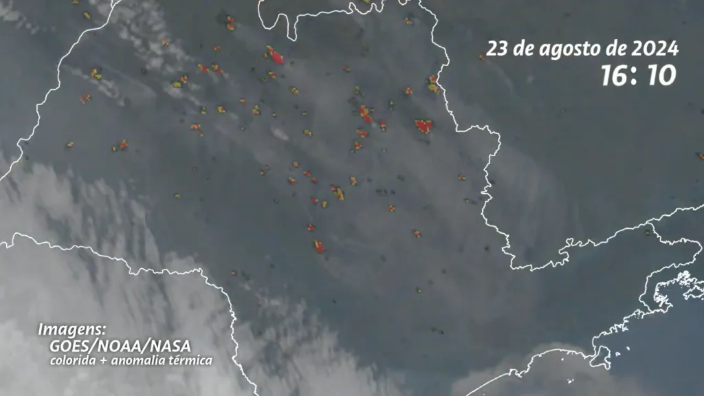 Análise do IPAM mostra que cortina de fumaça no estado surgiu em intervalo de 90 minutos no dia 23 de agosto; cana de açúcar e pastagens concentram origens da ignição nos três dias do episódio.