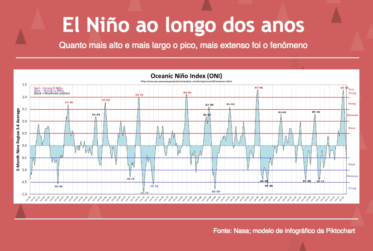 Esse fogaréu todo responde pelo nome de El Niño (“o menino”, em espanhol), que começou no ano passado e só foi perder força no primeiro semestre de 2016.