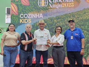 Claúdio Aquino, owner of the Assurini Cacau enterprise, won the International Chocolate and Cocoa Festival – Chocolat Xingu 2025 competition in the cocoa or chocolate-derived drinks category. The farmer is supported by the Sustenta Inova project, funded by the European Union and coordinated by SEBRAE Pará, in partnership with IPAM (Amazon Environmental Research Institute).