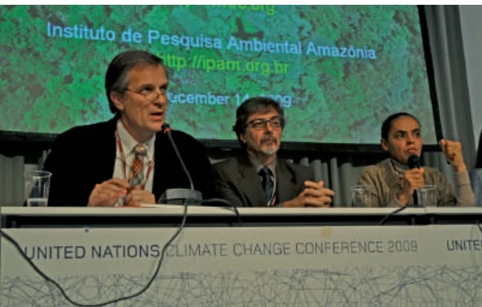 IPAM event at COP15 in Copenhagen in 2009, with the presence of Marina Silva, then senator for Acre and former Minister for the Environment (IPAM Collection)