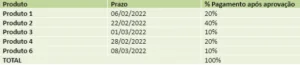 Os trabalhos previstos neste Termo de Referência deverão ser realizados entre 30 de janeiro de 2023 a 15 de março de 2023. Pela entrega satisfatória dos produtos descritos acima, o IPAM realizará o pagamento após a aprovação dos produtos conforme tabela a seguir, preferencialmente à pessoa jurídica.